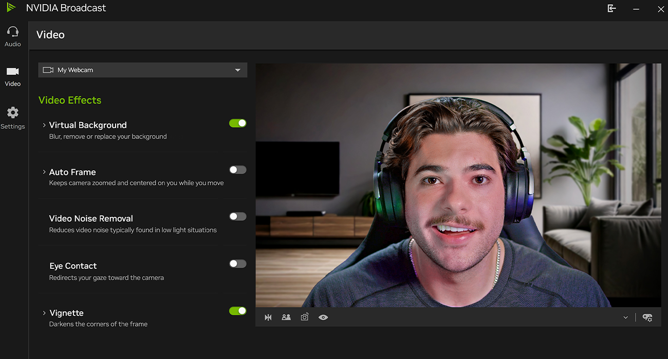 Додаток NVIDIA Broadcast дозволяє в режимі реального часу покращувати якість аудіо (шумопоглинання), накладати віртуальне тло та робити автоматичне кадрування. Стане в нагоді для відеоконференцій, стрімів чи запису контенту.