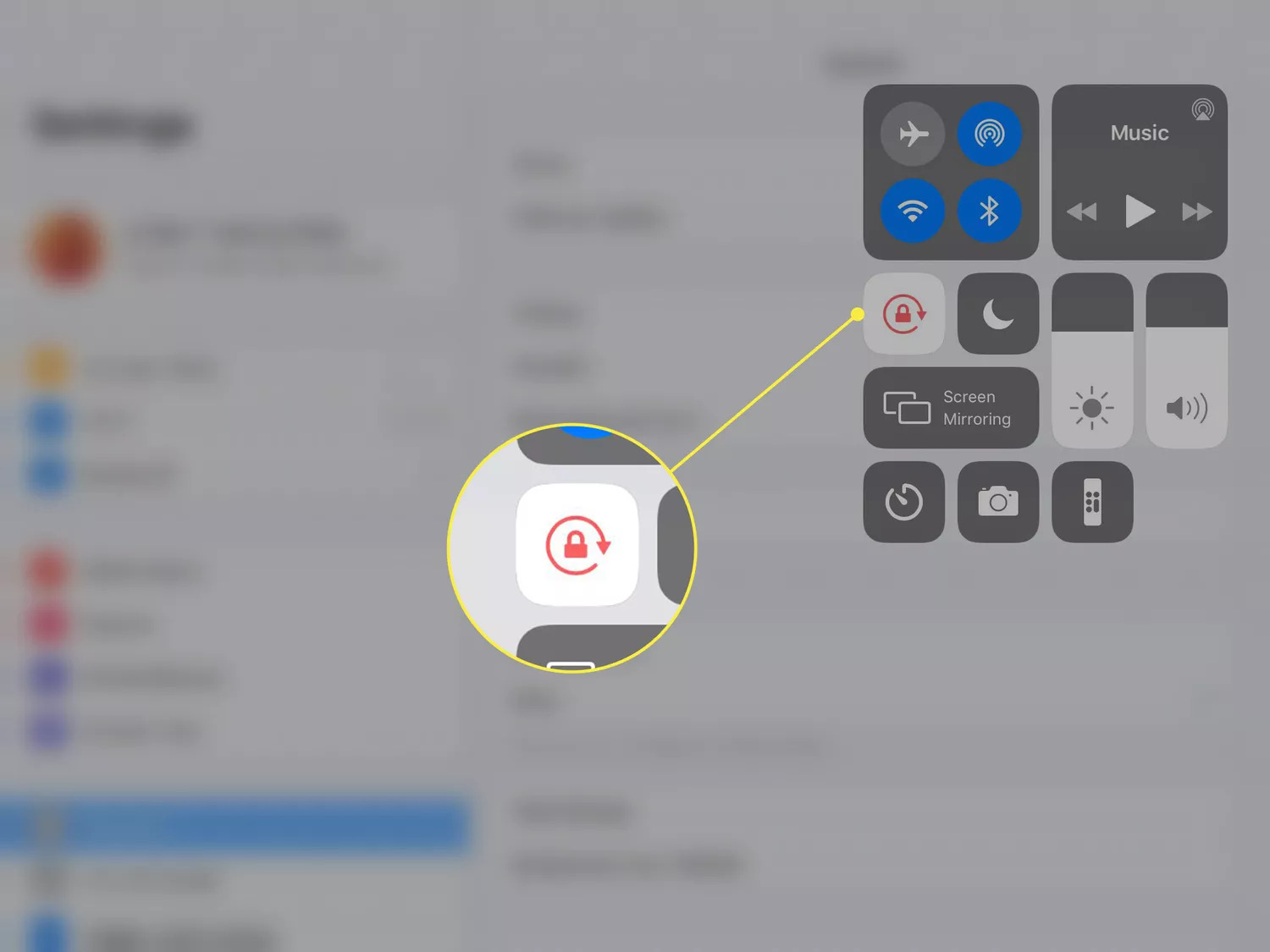 На планшетах Apple доступ до опцій орієнтації реалізований дуже інтуїтивно. Найшвидший спосіб — через Пункт керування. Для цього потрібно провести пальцем від правого верхнього кута екрана вниз. У меню, що з’явилося, буде іконка із зображенням замка в круглій стрілці. Якщо вона підсвічена червоним або білим кольором — блокування орієнтації увімкнено, і екран обертатися не буде. Щоб активувати автоповорот, потрібно просто натиснути на цю іконку.