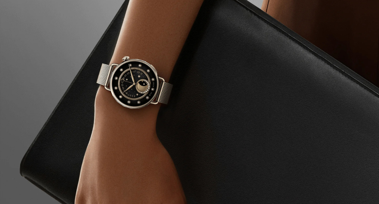 Версія Sunset gold – особливо розкішна. Її доповнює вирощений у лабораторії діамант на обертовій коронці та міланський ремінець – кожну деталь створено, щоб відобразити витончену елегантність.