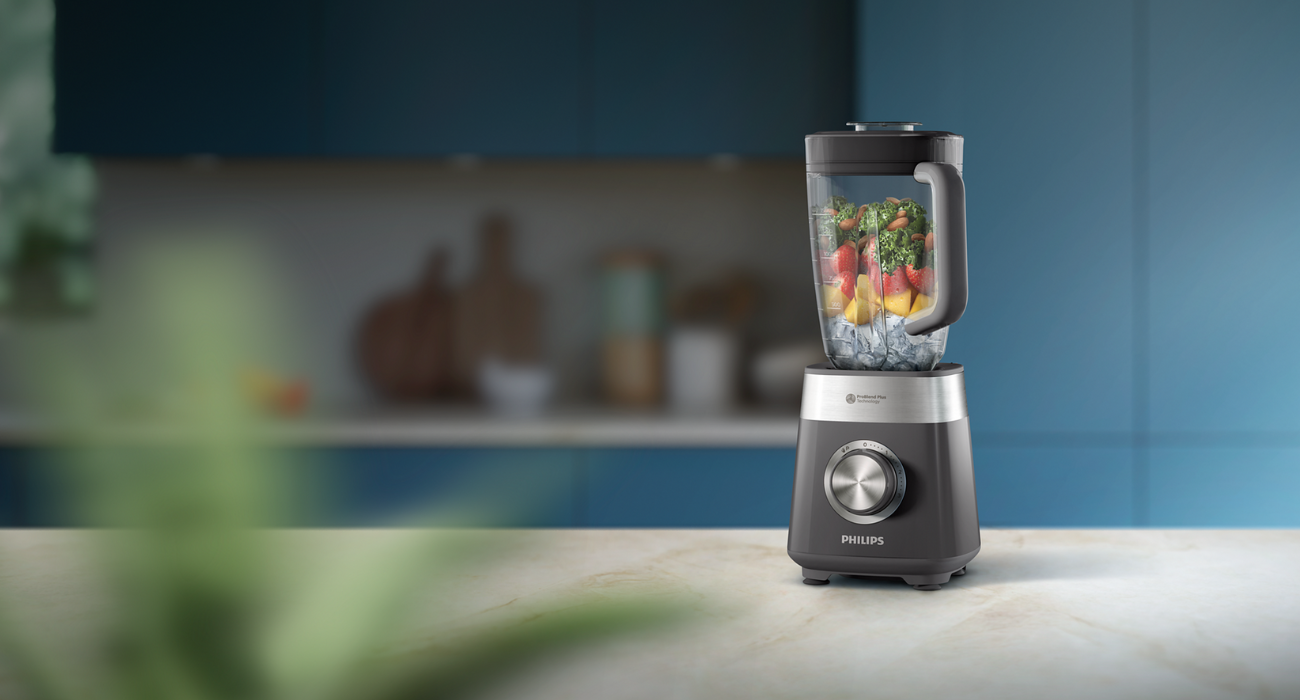 Смузі з ніжною текстурою без зайвих зусиль? Легко! Перетворіть фрукти та овочі на смачні вітамінізовані смузі з допомогою стаціонарного блендера Philips серії 5000. Спеціальна технологія ProBlend Plus подрібнює до ніжної однорідної текстури напоїв, супів, соусів та інших страв завдяки збільшеній потужності 1000 Вт. Виберіть один із трьох режимів швидкості для твердих і м’яких інгредієнтів або скористайтеся функцією Pulse для підсилення потужності, коли це потрібно. Ребра на стінці чаші спрямовують інгредієнти в потік подрібнення для оптимальної циркуляції та ідеального результату. Оснащений великою 2-літровою банкою, щоб приготувати великою порцією.
