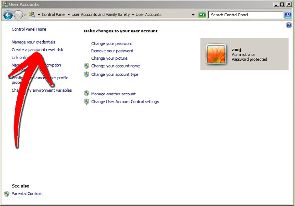 - Для Windows 7. Откройте меню «Пуск» и выберите «Панель управления». Перейдите в раздел «Учетные записи пользователей». В открывшемся окне найдите ссылку «Создание пароля своей учетной записи», введите секретную комбинацию, подтвердите ее и создайте подсказку для восстановления.